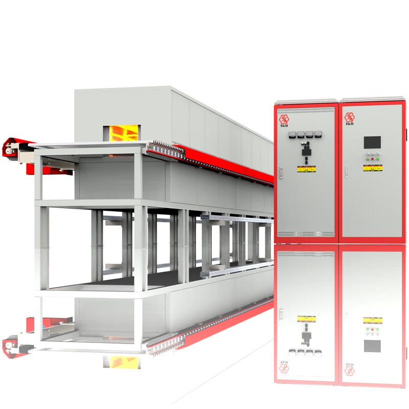 A roller kiln is an essential equipment used for sintering, drying, and production of new materials or battery raw materials. It is a continuous kiln typically composed of multiple heating zones connected by rollers. In a roller kiln, materials are usually placed in boxes or trays, which travel along horizontal rollers entering from one end of the kiln, passing through various heating zones within the kiln, and exiting from the other end. During this process, the materials inside the boxes or trays are continuously heated to complete the sintering or firing process. Temperature and time are controlled according to a set heating profile to ensure the products achieve the desired quality and physical properties.